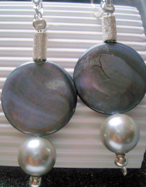 Ohrhänger aus 925er Sterlinsilber mit Perlmutt und 10 mm Muschelkernperle,