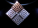 Einfache, klare, geometrische Formen und eine Oberfläche, die durch ihre Eismattierung jeden Lichstrahl reflektiert, zeichnen diese Anhänger aus 925er Sterlingsilber aus.